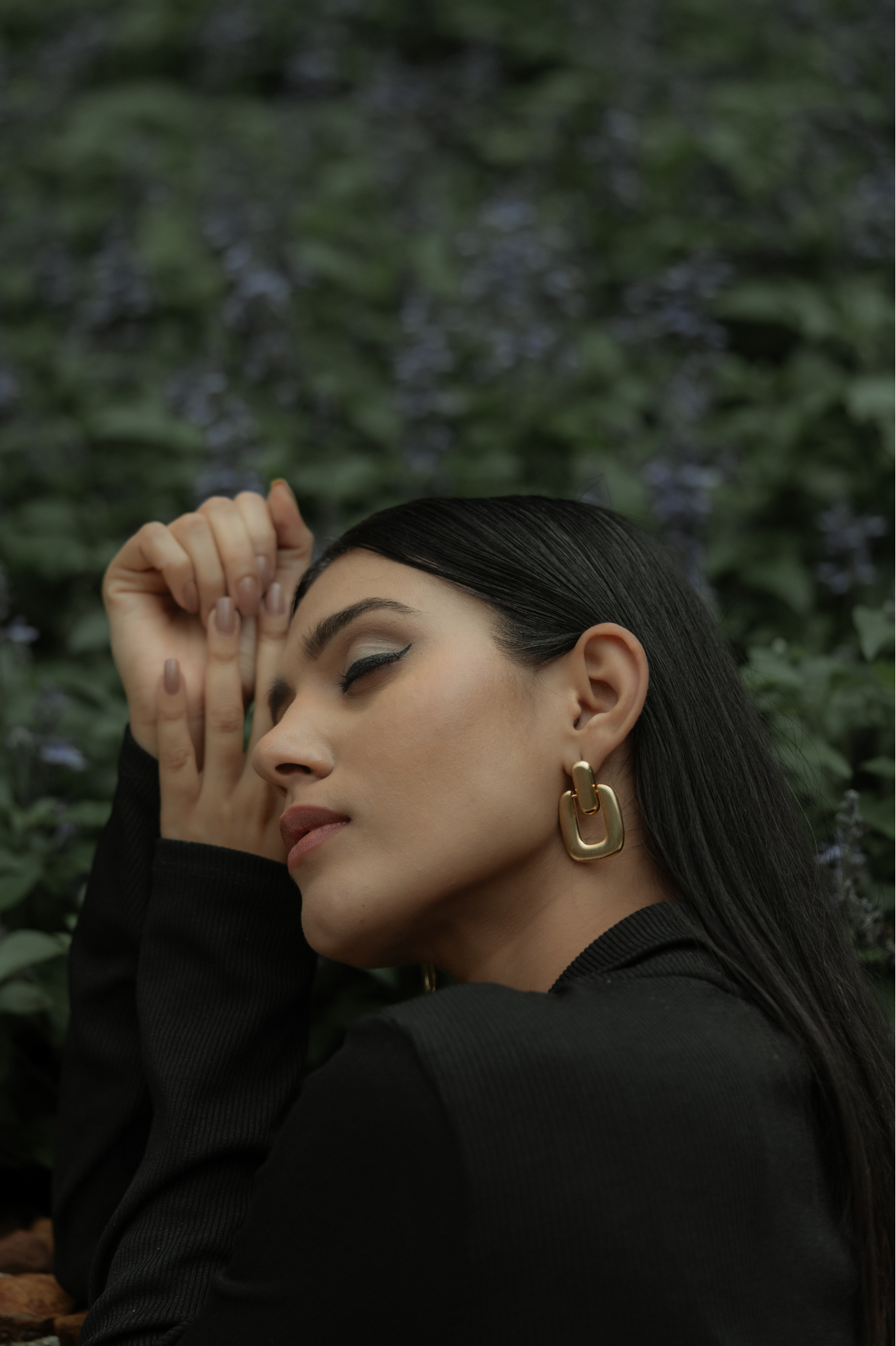 Crafted with meticulous attention to detail, these earrings feature 18K dense gold plating and a luxurious brushed gold finish, complemented by a 925 sterling silver post for hypoallergenic comfort for sensitive skin. Enhanced with anti-tarnish properties and waterproof construction, these earrings are made to withstand time and elements.